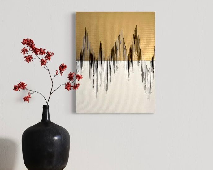 Ein Blick auf die Welt von unten nach oben. Die Serie „Gipfelsturm“ zeigt Gebirge, die durch ihre Form, Größe und Geschichte beeindrucken, in einer abstrakten Form. Die Farbzusammensetzung aus Gold, Schwarz und verschiedenen Grautönen betont die rohe Präsenz der Natur. Durch die verschiedenen Farbschichten verkörpern die Bilder dieser Kollektion Struktur, Linie und Masse. „Gipfelsturm“ ist eine Abstraktion des Geformten, des Wiederständigen und des Unverrückbaren.
