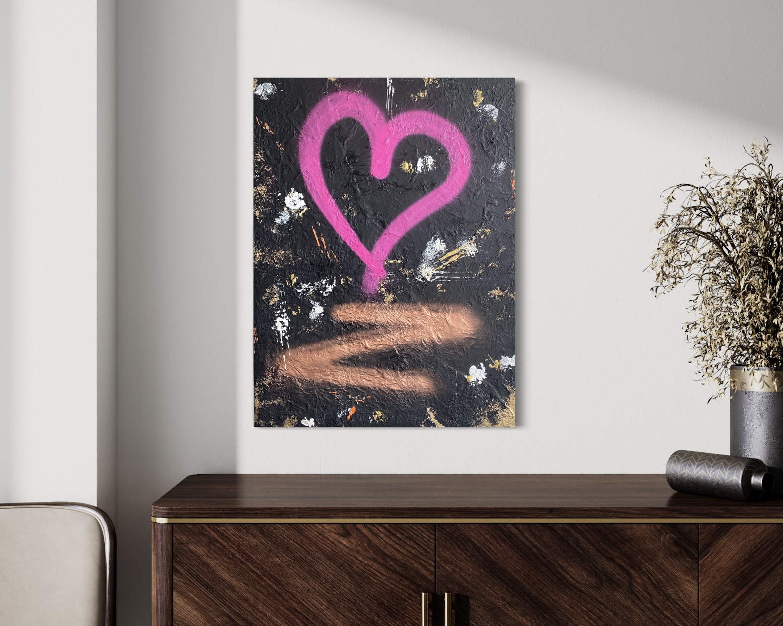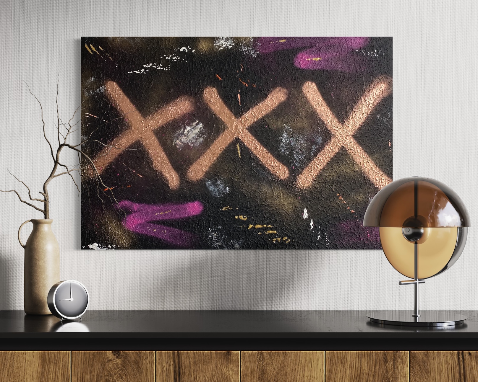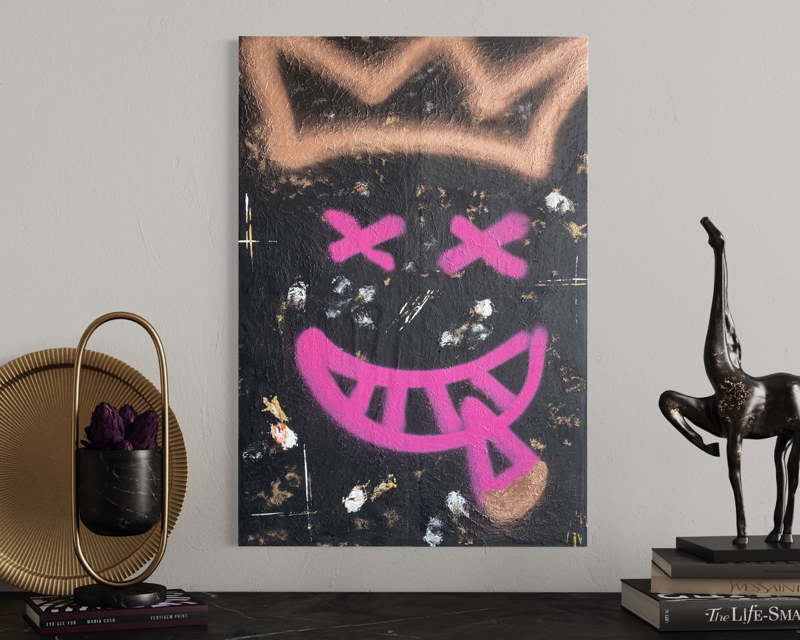„Underground“ ist eine abstrakte Reise durch die verborgenen Schichten urbaner Kultur. Die Kombination aus dunklen Untergründen und leuchtenden Farbelementen spiegelt die Kreativität in rauen Umgebungen wider – roh, echt, ungeschönt. Eine Abstraktion von Orten, an denen urbane Subkultur lebt.