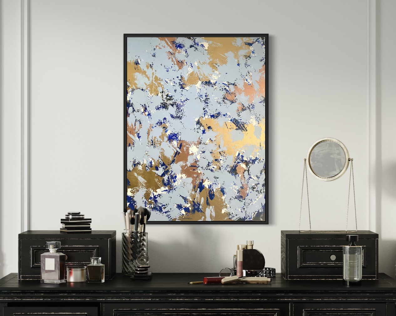 Eine Epoche des Aufbruchs – zwischen Licht und Schatten, Glauben und Vernunft, Macht und Menschlichkeit. Die Renaissance war mehr als eine Wiedergeburt der Antike: In der Kunst verschmolzen Formen im Sfumato, in der Wissenschaft drehte sich das Weltbild mit Kopernikus und im Humanismus erhob sich der Mensch als freies, schöpferisches Wesen. Diese Kollektion, mit ihren prachtvollen, restaurierten Rahmen, ist eine abstrahierte Hommage an ein Zeitalter des tiefgreifenden Wandels hinsichtlich Denken, Sehen und Fühlen.
