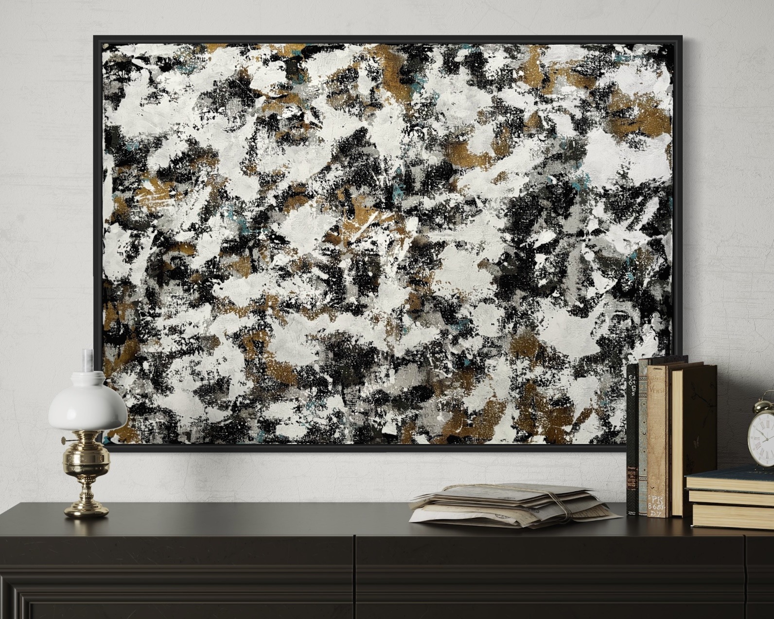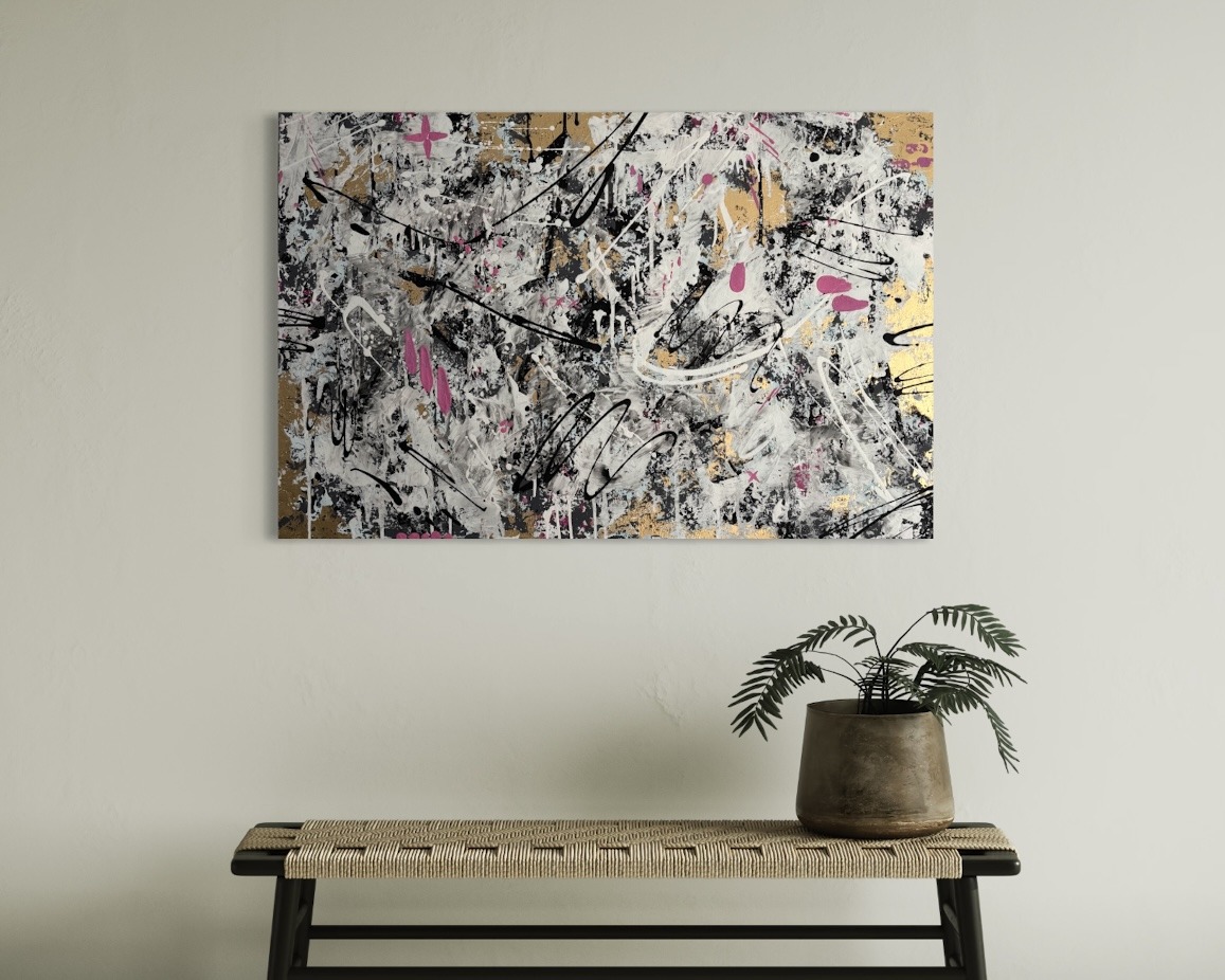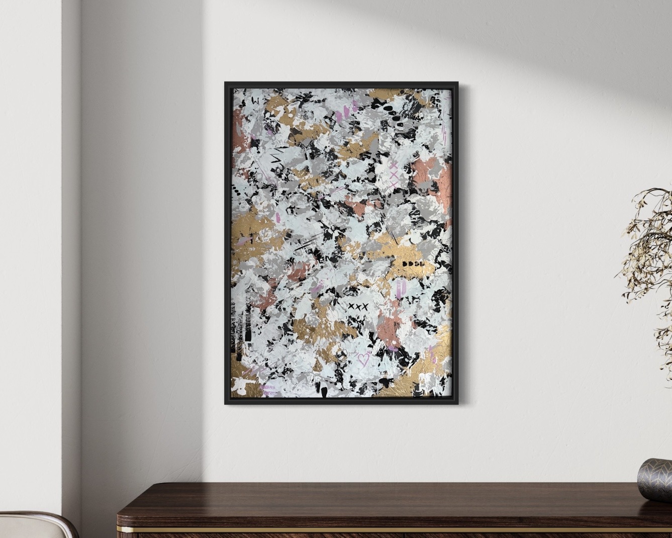 Diese Serie konzentriert sich auf das Wesentliche. Reduzierte Farbgebung, klare Formen und bewusste Kontraste stehen im Mittelpunkt. Jedes Werk entsteht aus einer einfachen Dynamik heraus. Die Bilder unterscheiden sich in kleinen Entscheidungen. In Richtung, Form und Dichte – bleiben aber bewusst reduziert. So entsteht eine Serie, in der Ruhe und Kontrast gleichzeitig wirken. Und sich direkt in Dein Zuhause übertragen lassen.